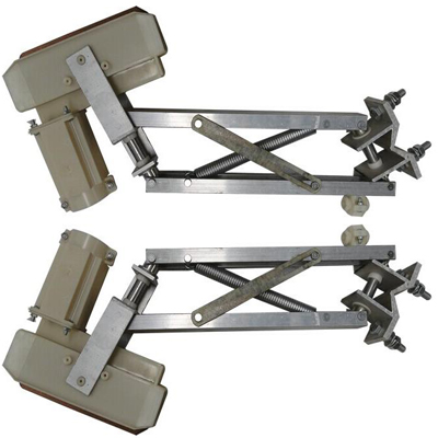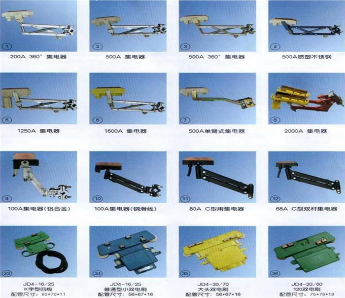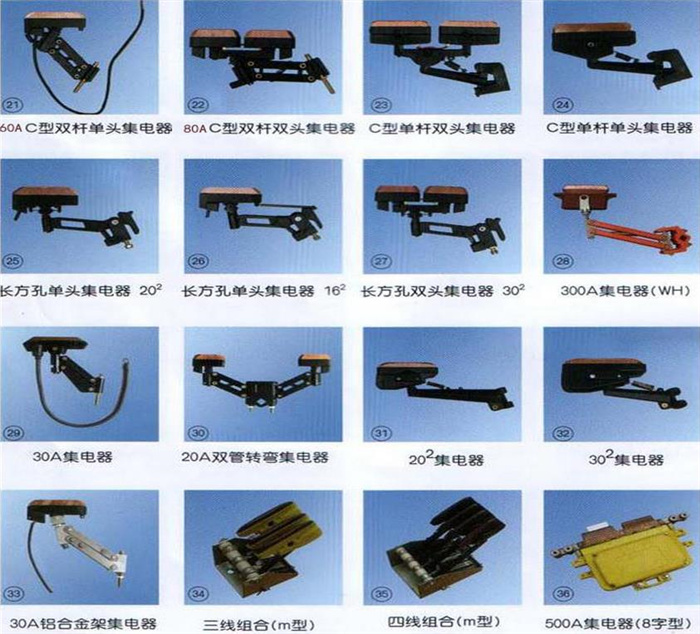 H型單極集電器是滑觸線系統(tǒng)中集電側(cè)拾取電能的主要裝置之一,它通過集電刷與導(dǎo)軌的滑動接觸,將電能直接傳導(dǎo)至用電器,從而實(shí)現(xiàn)系統(tǒng)的移動供電。H型單極集電器由機(jī)械結(jié)構(gòu)的張力裝置和直接與導(dǎo)軌滑動接觸的集電刷兩部分組成,機(jī)械結(jié)構(gòu)的張力裝置決定集電刷與導(dǎo)軌的滑動接觸壓力和機(jī)構(gòu)的穩(wěn)定性,集電刷則是導(dǎo)軌滑動接觸拾取電能的導(dǎo)體,它的性能和導(dǎo)電質(zhì)量以及材料結(jié)構(gòu)成分的優(yōu)劣,將直接影響整個系統(tǒng)設(shè)備的安全運(yùn)行質(zhì)量,因此集電器是整個滑線系統(tǒng)中最主要的部件之一。