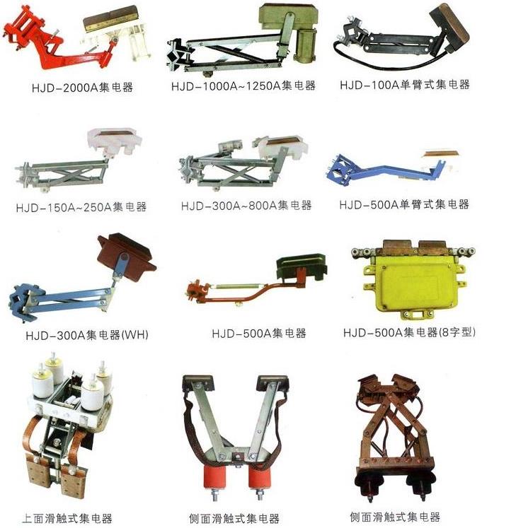HJDX系列集電器是滑觸線系統(tǒng)中集電側(cè)拾取電能的主要裝置之一,它通過(guò)集電刷與導(dǎo)軌的滑動(dòng)接觸,將電能直接傳導(dǎo)至用電器,從而實(shí)現(xiàn)系統(tǒng)的移動(dòng)供電。集電器由機(jī)械結(jié)構(gòu)的張力裝置和直接與導(dǎo)軌滑動(dòng)接觸的集電刷兩部分組成,機(jī)械結(jié)構(gòu)的張力裝置決定集電刷與導(dǎo)軌的滑動(dòng)接觸壓力和機(jī)構(gòu)的穩(wěn)定性,集電刷則是導(dǎo)軌滑動(dòng)接觸拾取電能的導(dǎo)體,它的性能和導(dǎo)電質(zhì)量以及材料結(jié)構(gòu)成分的優(yōu)劣,將直接影響整個(gè)系統(tǒng)設(shè)備的安全運(yùn)行質(zhì)量,因此集電器是整個(gè)滑線系統(tǒng)中最主要的部件之一。
